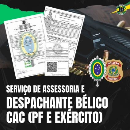 Serviço especializado de despachante e assessoria documental para processos de CAC, com acompanhamento integral junto a Polícia Federal e o Exército.